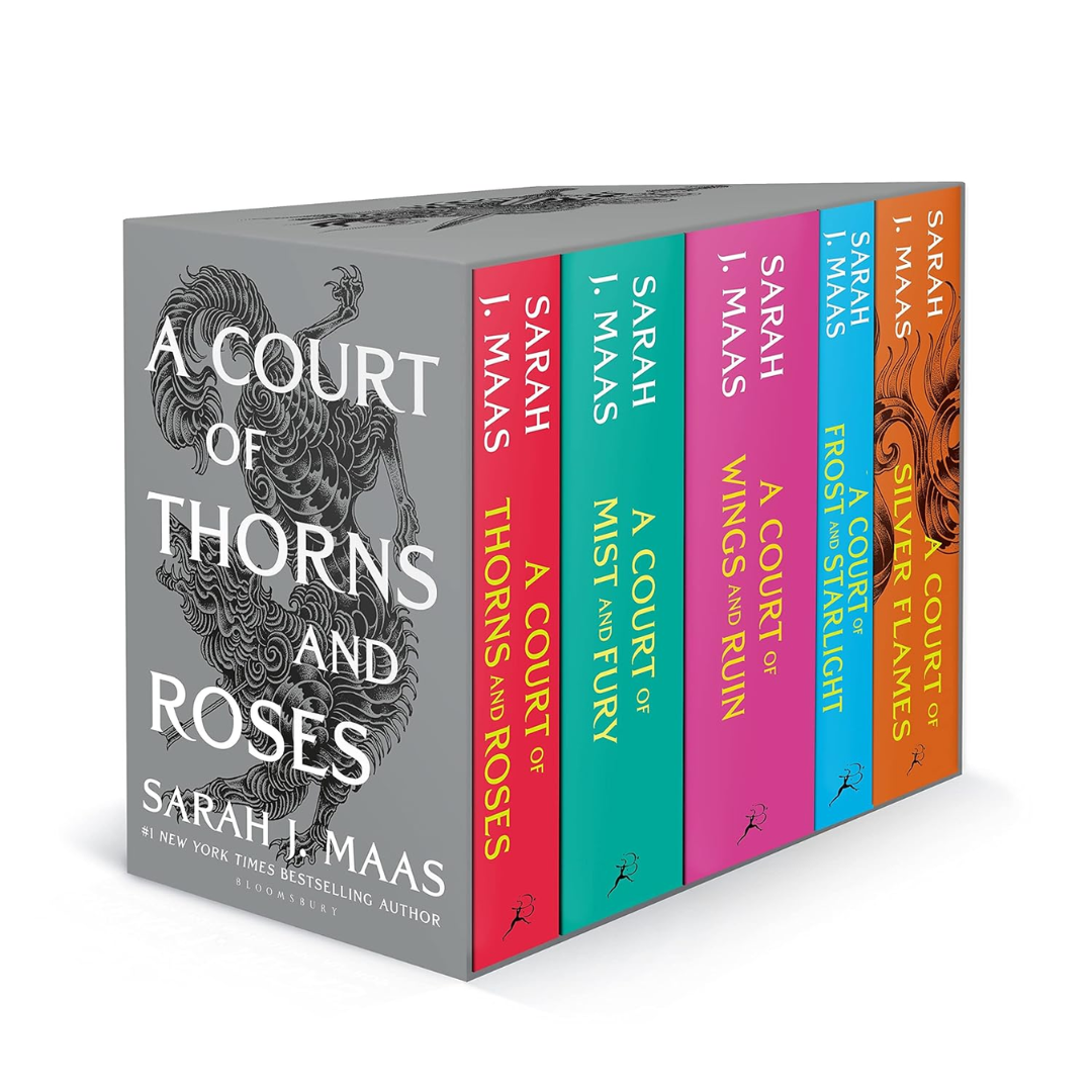 This stunning, five-book box set of the #1 bestselling series by Sarah J. Maas includes A Court of Thorns and Roses, A Court of Mist and Fury, A Court of Wings and Ruin, A Court of Frost and Starlight, and A Court of Silver Flames.
